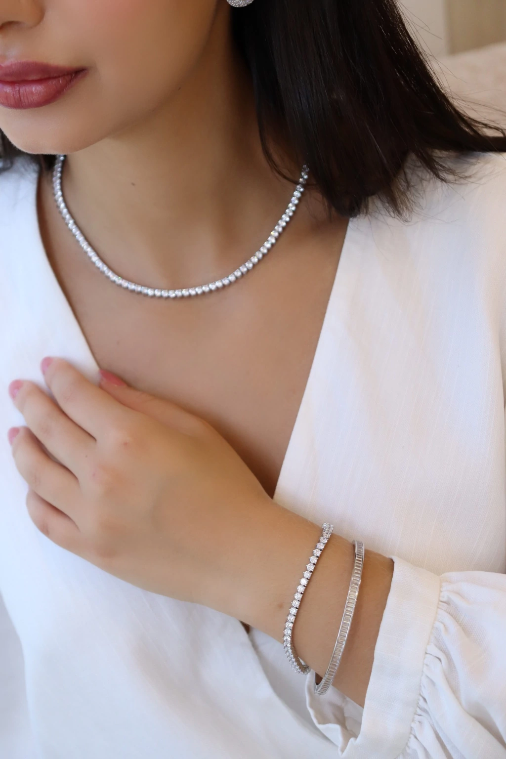 Elegante e sofisticado, este bracelete em banho ródio é totalmente cravejado com zircônias, refletindo brilho intenso e delicadeza. Uma peça versátil e atemporal, perfeita para ser usada sozinha ou em mixs de pulseiras, adicionando charme e estilo ao visual.
