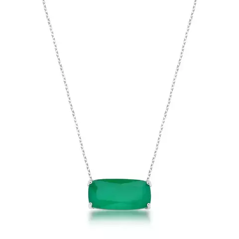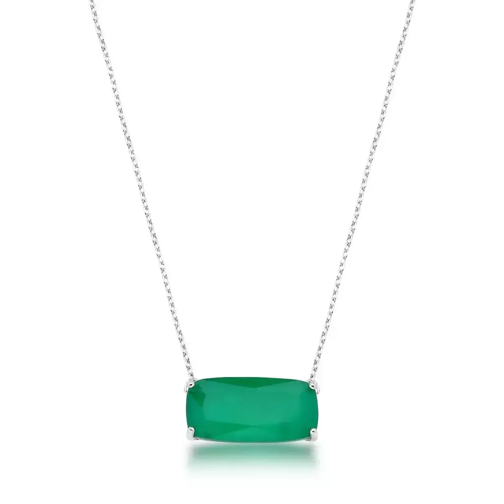 Colar Pingente Retangular Verde Esmeralda Ródio