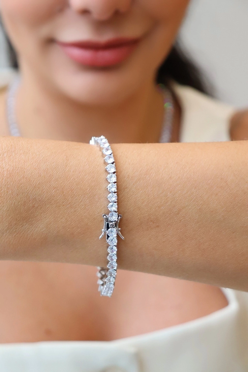 Nossas peças possuem acabamento de alta joalheria, com trama rígida que garante caimento impecável e conforto (não vira no pescoço). O fecho joia tipo gaveta proporciona segurança e praticidade, enquanto as zircônias premium, de brilho intenso, elevam a sofisticação de cada detalhe.