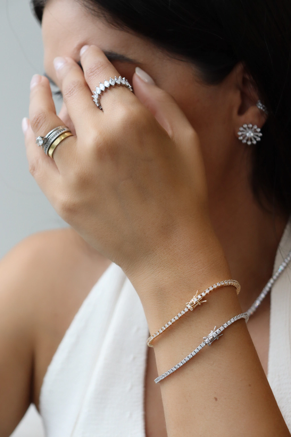 Um verdadeiro clássico da joalheria, a pulseira Riviera combina elegância, brilho e delicadeza. Essa peça permite composições sofisticadas com outras pulseiras, criando harmonia e estilo. Para um visual impactante, recomendamos usar 3 peças juntas, valorizando o pulso com charme e muito brilho. Consulte nossa quipe, para compor o mix perfeito para você.