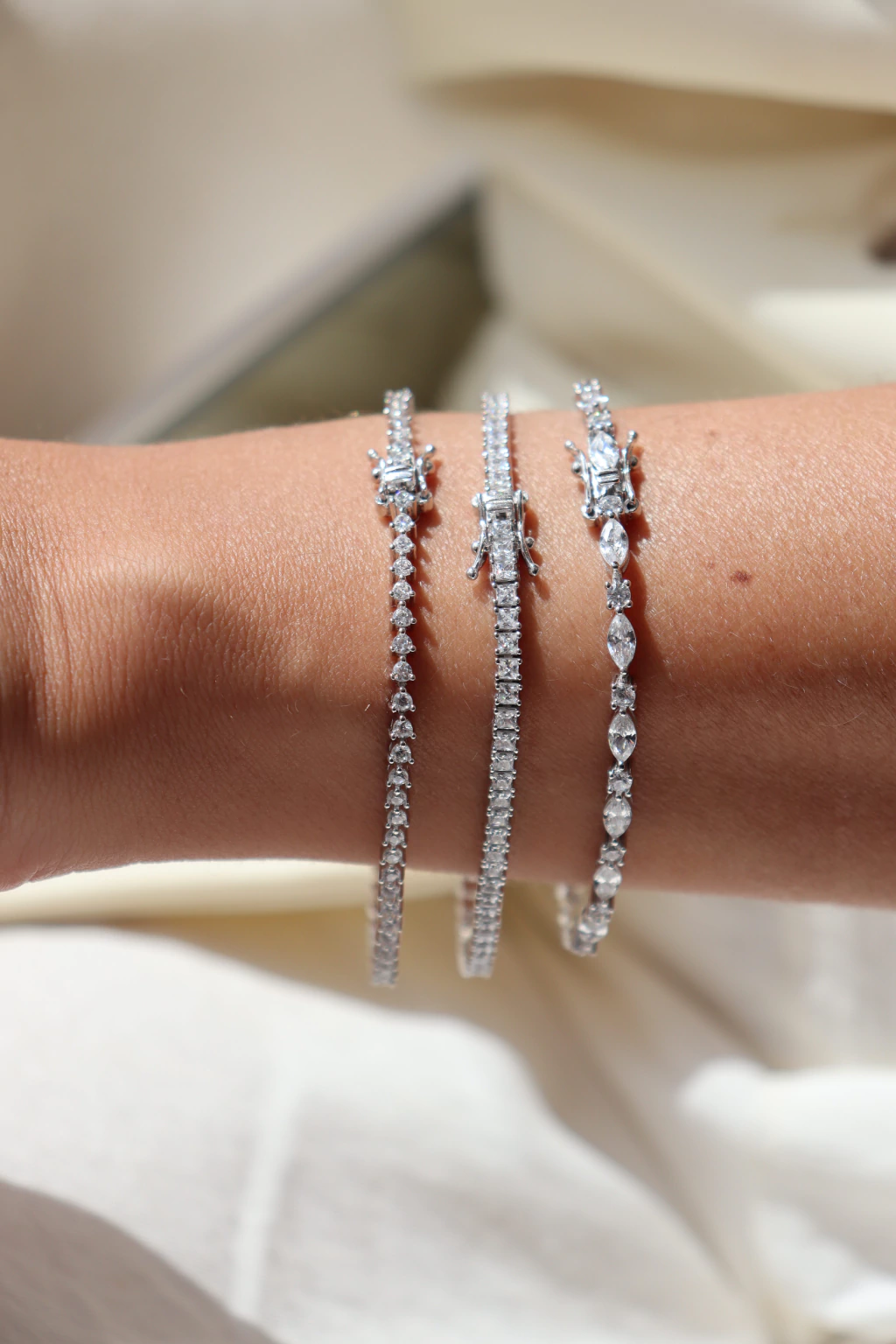 Clássica e sofisticada, esta pulseira Riviera em Prata 925 apresenta quatro pontos cravejados com zircônias de 3mm, refletindo brilho intenso e elegância atemporal. Versátil e delicada, é perfeita para usar sozinha ou em mix com outras pulseiras, criando composições modernas e cheias de estilo.